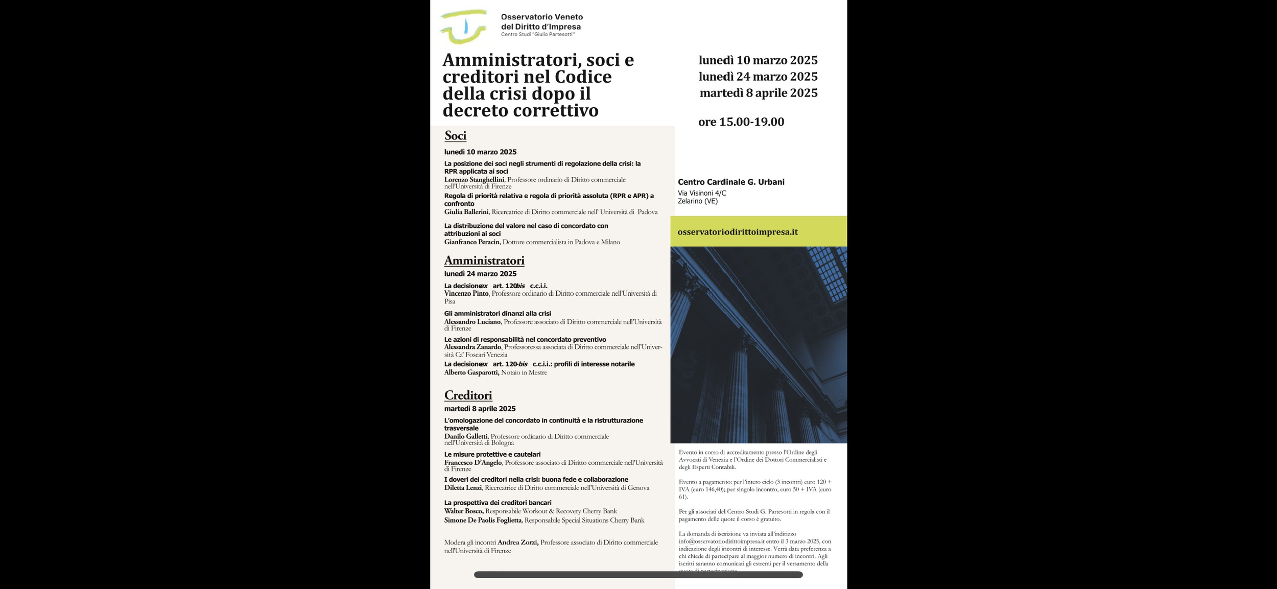 Speaking in Venice at the conference organized by the “Osservatorio Veneto del Diritto d’Impresa” was an opportunity to delve again into many interesting topics in corporate and insolvency law.